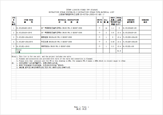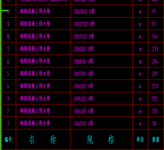 系统出图与材料表工具集成于AutoCAD,实现在AutoCAD中登录PDMS工程,实现给水排水管道平面布置图和纵断面图出图,材料表工具可定制内容丰富的Excel材料表,如图所示。