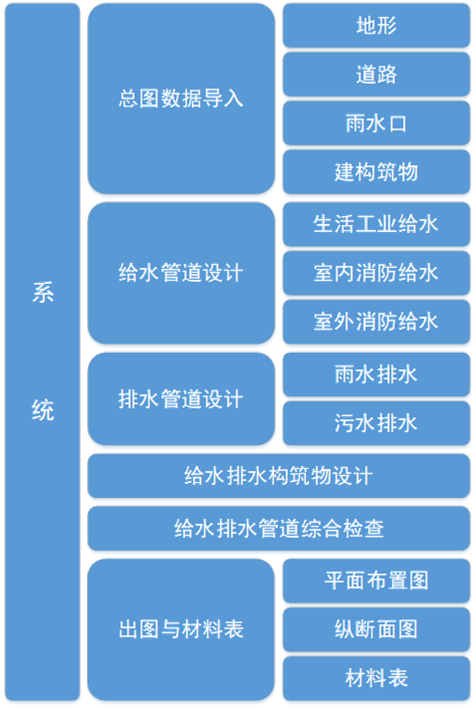 2018年长沙恩为软件有限公司与中国电力工程顾问集团西北电力设计院有限公司合作开发,在原有厂区雨水管道设计基础上,拓展了包括生活污水管道、工业废水管道和事故排油管道的厂区污水管道设计功能,拓展了包括生活给水管道、工业废水管道、室内消防管道和室外消防管道的厂区给水管道设计功能,拓展了给水排水构筑物设计和给水排水管道综合检查功能,打造完整的厂区给水排水管道设计解决方案,为实现全专业三维数字化协同设计奠定了重要基石。
