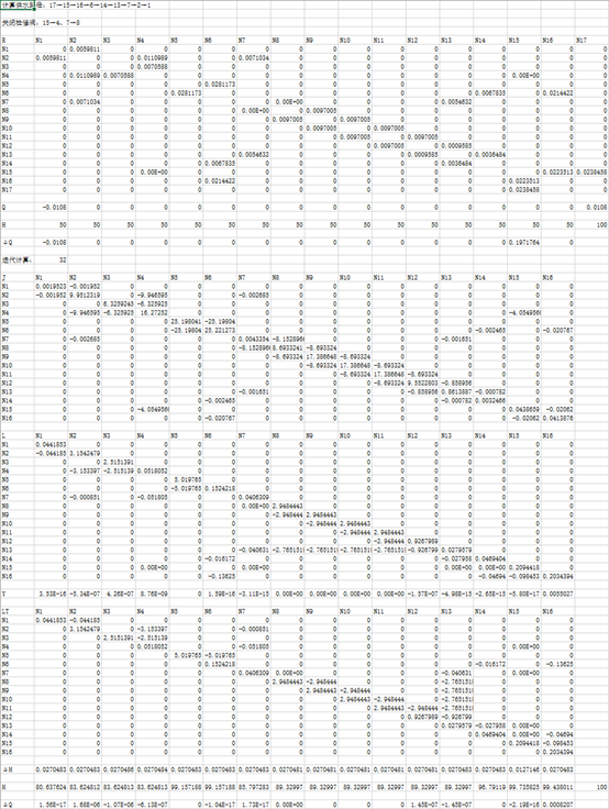 室内消防给水管道计算输出Excel格式计算书,包含平差计算过程和结果。